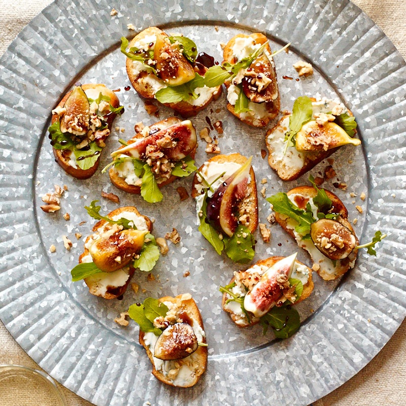 Fig & Blue Cheese Crostini with Balsamic-Honey Drizzle