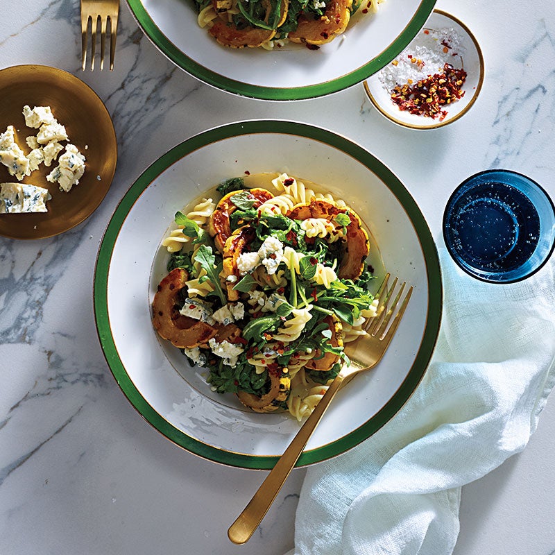 Fusilli with Delicata Squash, Blue Cheese & Arugula