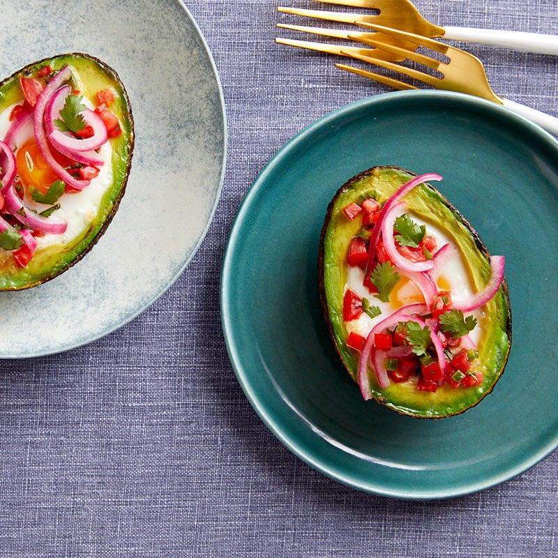 Egg Baked in Avocado with Pickled Onion & Fresh Tomato Salsa