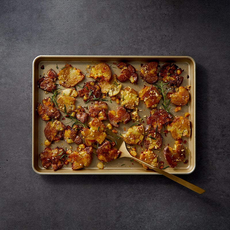 Roast potatoes, parsnips, chestnuts, and other starchy vegetables to bring out the aromas and natural sweetness of these foods while adding acrispy texture.