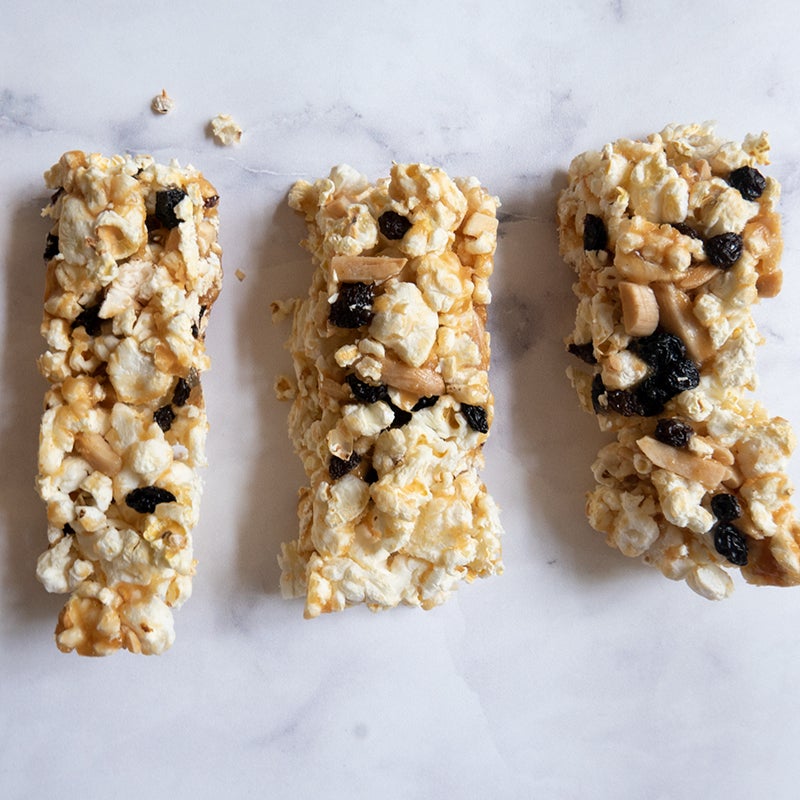 Minimize higher-calorie ingredients (like nuts, chocolate, and dried fruit) in homemade granola bars and cookies by stirring plain popcorn into your batters and mixes.
