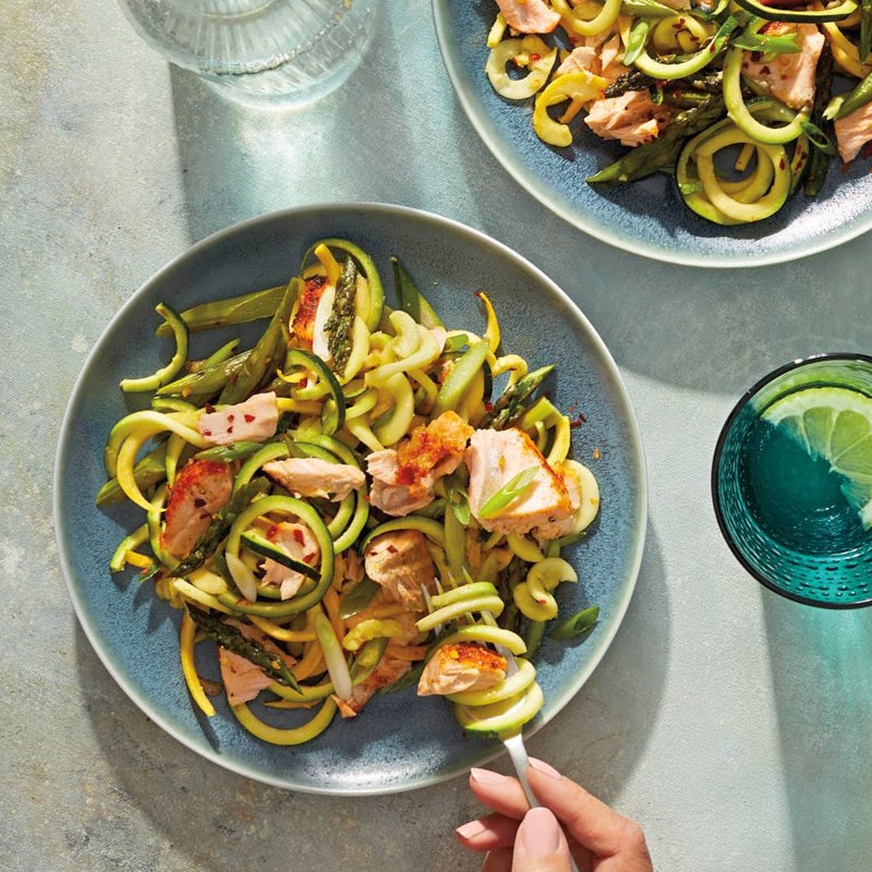 Spiralize carrots, beets, zucchini, or butternut squash, or roast and rake spaghetti squash into strands, and use them as a spaghetti stand-in.