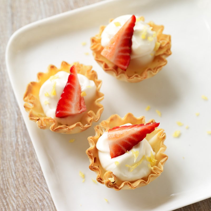 There are tiny tarts made with store-bought phyllo shells perfect as one-bite appetizers, larger company-worthy tarts made with layered sheets of phyllo dough, traditional tarts made with homemade crusts, and easy, no-bake tarts made with our fave cooking hack (using packaged Pizzelle cookies as a super-fast, super-tasty “crust”).