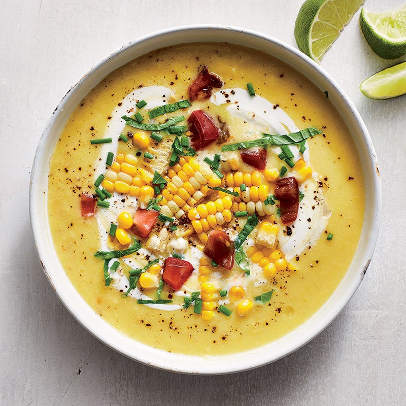 Combine softened light butter, fresh thyme leaves, snipped fresh chives, and grated lemon peel; brush on corn.