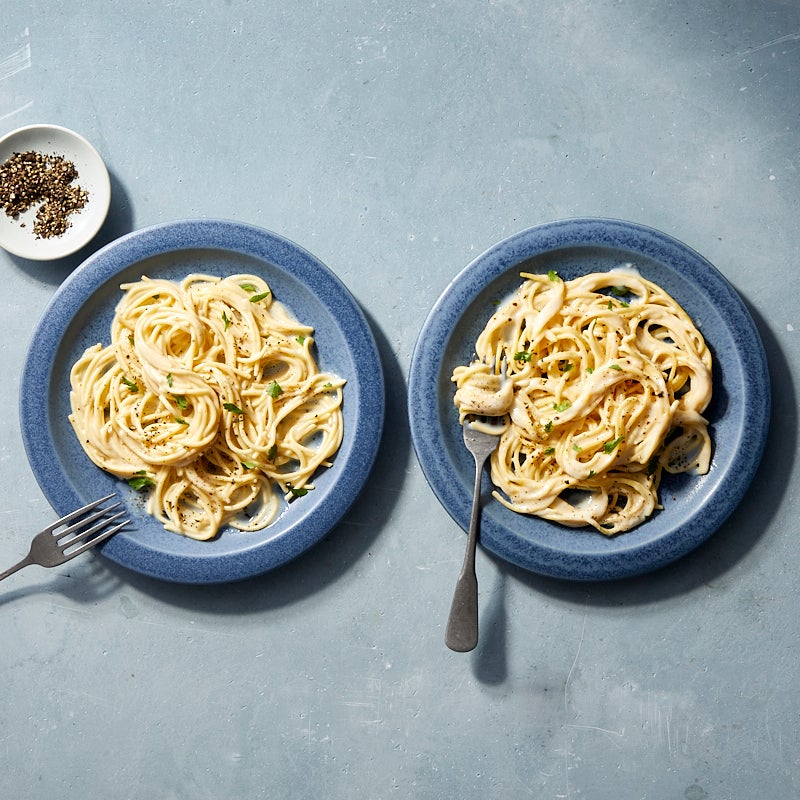 Chickpea Spaghetti with Cottage Cheese Alfredo