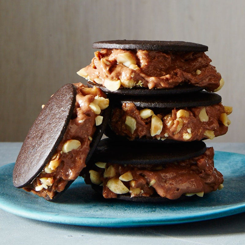 Mini chocolate peanut butter ice cream sandwiches