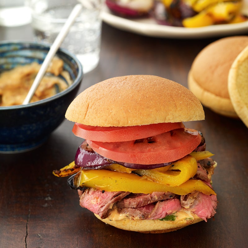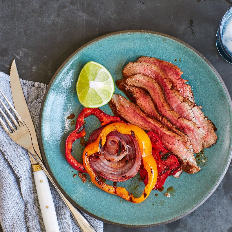 Coffee-Chili Rubbed Flank Steak with Peppers and Onions
