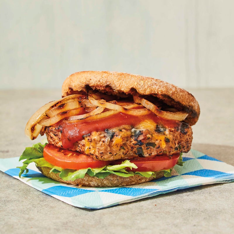 Burgers made from super lean ground turkey and chicken don’t have to be dry. Amp up the flavor, texture, and juiciness by adding minced portobello mushroom or shredded zucchini to the burger mixture before forming patties. Just be sure to remove excess moisture from shredded zucchini, if using. Squeeze the zucchini in your hands over a bowl, or use the back of a spoon to push out the moisture through a fine-mesh strainer. The goal is a juicy burger, not a soggy one!