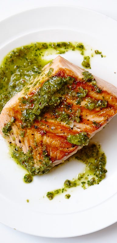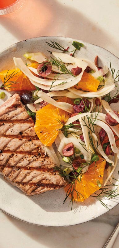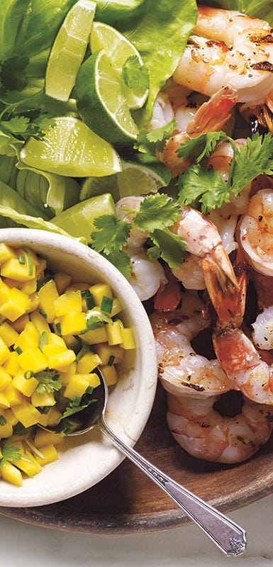 Unless you’re grilling seafood that’s been marinated, use a paper towel to blot surface moisture from the fish before cooking. This will help the fish grill instead of steam. Cooking temperatures vary a bit by specific recipe, but medium or medium-high heat is usually a good bet for achieving that coveted sear on the outside while keeping the interior nice and tender. Food-safety experts say seafood—including fin fish, scallops, lobster, and shrimp—is cooked through once the flesh turns opaque and/or flakes easily with a fork.