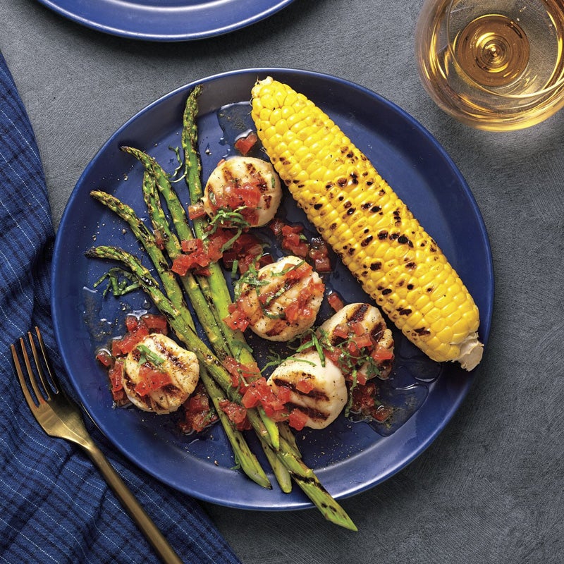Grilled Scallops with Honeydew-Jalapeño Salsa