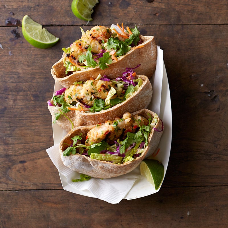 Grilled Shrimp Lettuce Wraps with Sweet Chili Sauce, Mango & Toasted Coconut