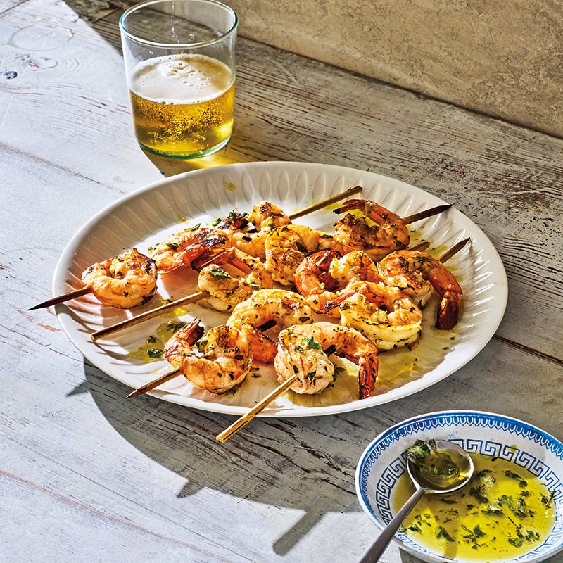 Have you ever tried to flip shrimp kebabs and gotten frustrated when the skewer simply spinswithinthe food, leaving the same side exposed to flames? A trick to try next time: Skewer twice. Line up shrimp on your prep surface and thread two parallel skewers through each. The dual anchor points lock the shrimp in position for easy flipping and cooking. Or, try kebab-size grilling baskets. Like the fish baskets mentioned above, these enclose your delicious ingredients in an easy-to-flip accessory. Bonus: no discarded skewers poking through your trash bags.