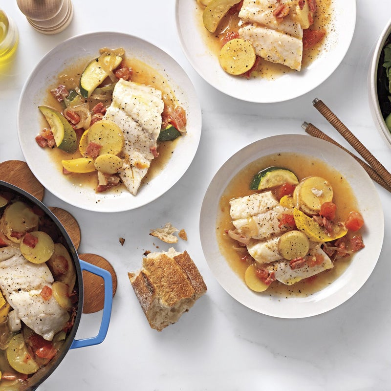 Dutch-oven steamed cod