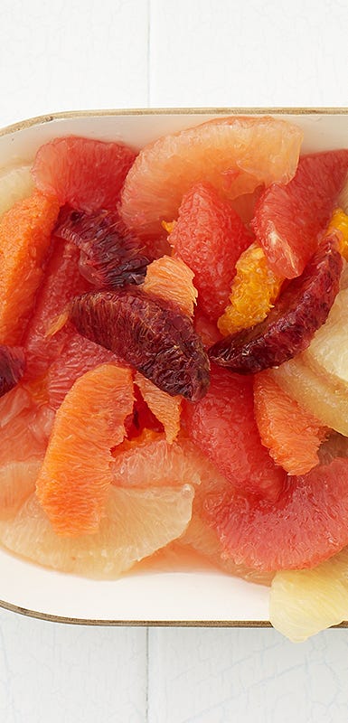 When buying grapefruit, look for fruit that’s heavy (which means it’s juicy!) with a slightly flat end and no soft spots. Press the skin; it should feel springy and have a smooth texture. If grapefruit is generally too tart for your taste, opt for a ruby red or pink varietal, which tend to be sweeter (not to mention packed with vitamin C and the antioxidant lycopene).