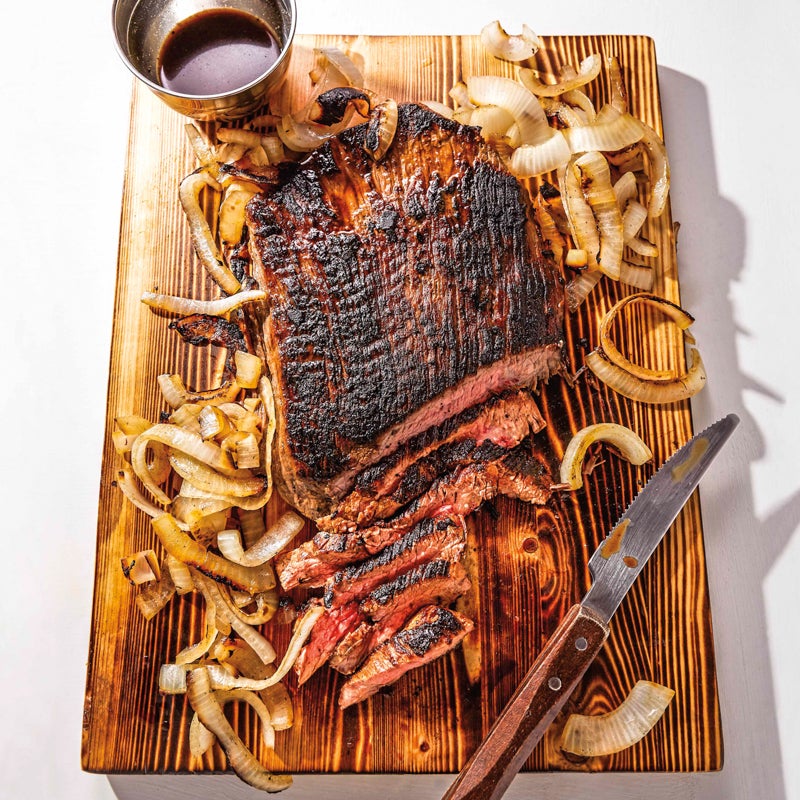 BBQ flank steak with onions