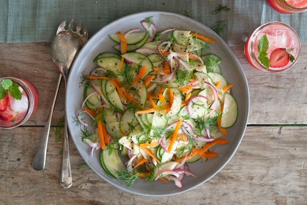 No matter the season, this bright,refreshing cucumber salad with quick pickled onionmakes a tasty side dish. Better yet, dice it to use as a relish on everything from burgers to grilled fish.