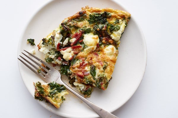Whether for breakfast, lunch, or dinner, thissavory kale and bacon frittatais a hearty make-ahead meal on its own, and delicious served alongside potatoes and a salad. Feta cheese, shallots, and turkey bacon provide loads of flavor that feels indulgent.