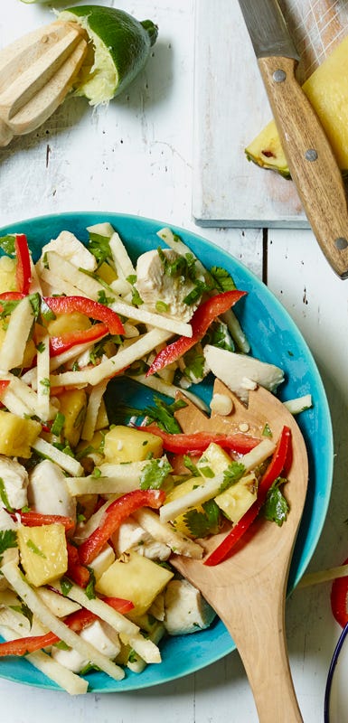 Salads are easy to keep low in Points value, chock full of satisfying ingredients: lots of vegetables, paired with some protein, and a little fat for a balanced meal. They don't have to be boring—the more colorful, the better!