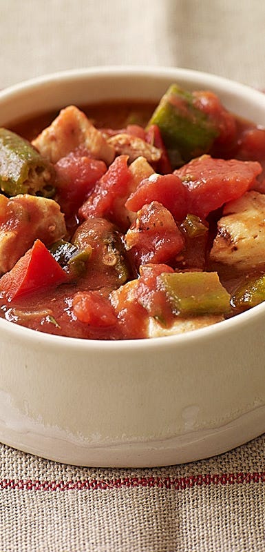 This stewlike dish typically teams up chicken, pork or shellfish (or a combination thereof) with a wide variety of vegetables such as peppers, onions, okra and tomatoes. It's one of your better Mardi Gras choices from a nutritious standpoint.