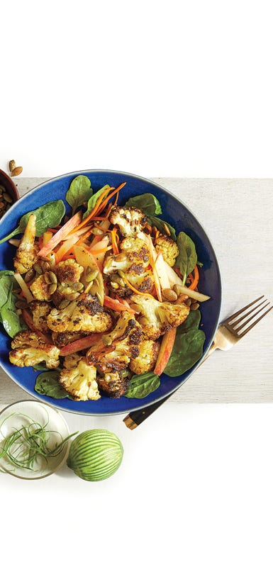 If you plan to eat the same ingredients for a few days in a row, changing things up can help you beat mealtime boredom: “Turn a salad into a sandwich; add protein and veggies on flatbread and make a pizza; or spice things up with a different dipping sauce or dressing,” White suggests.