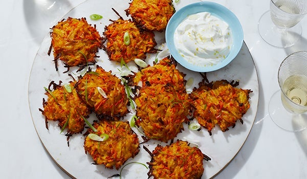 Thaw carrot spirals, drain and chop, and use in place of fresh carrots in these incredible potato pancakes.