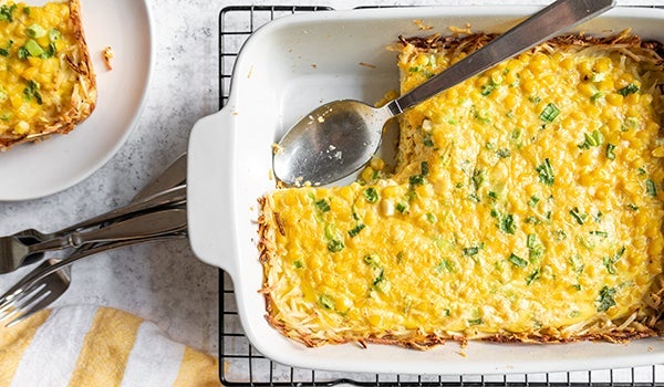 Turn those potatoes into a crisp bottom crust for the creamy corn casserole shown here, or use as a quick top crust for chicken pot pie.