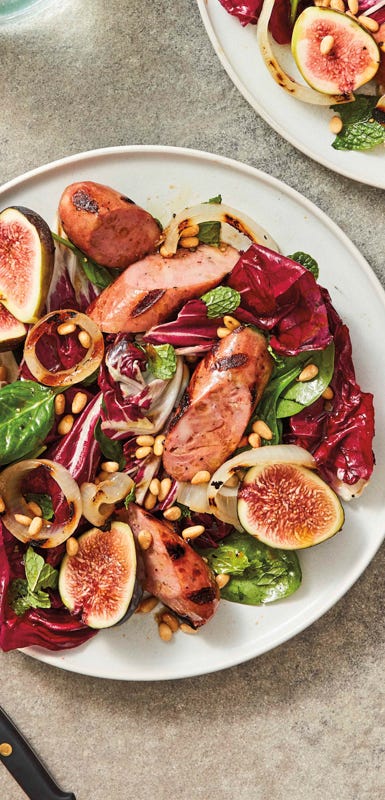 Fresh, ripe figs should be soft and yield slightly to the touch, but not be mushy. Look for figs with clean, dry skin. If you pick up a box of figs and notice a sour smell or fruit with broken skin, they’re probably old or overripe. Perfectly ripe figs have a short lifespan; store them in the fridge for about three days. Fresh figs are a good source of fiber, calcium, and potassium and are great in sweet-and-savory preparations.