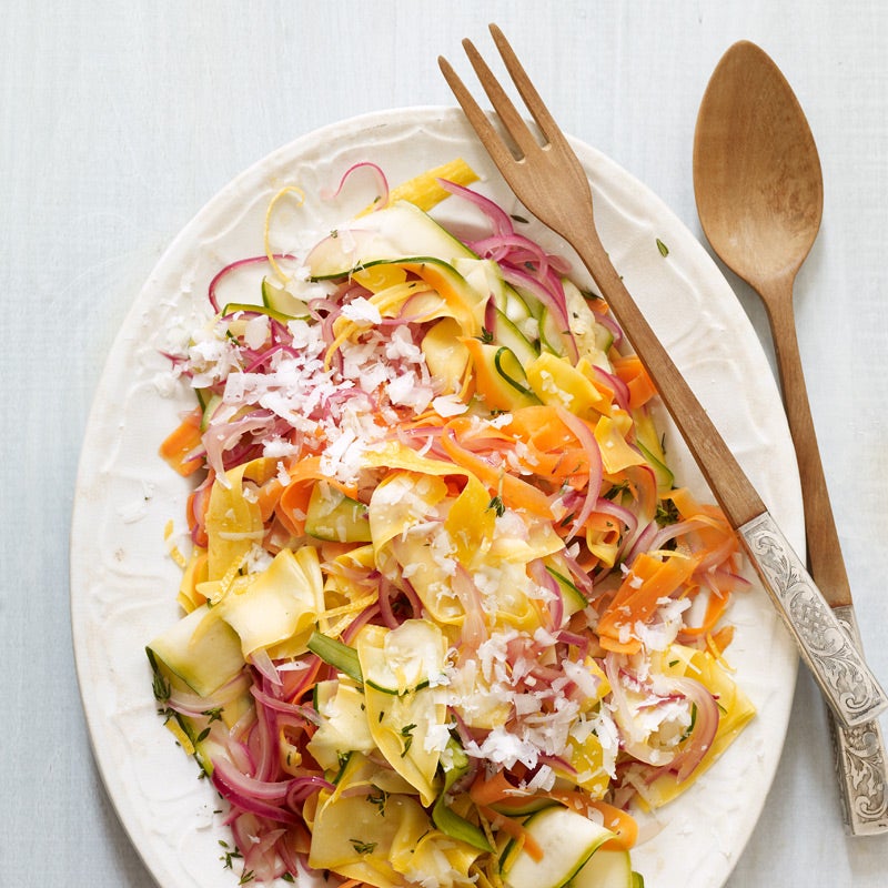 Tricolor Vegetable Ribbons with Lemon, Thyme and Pecorino