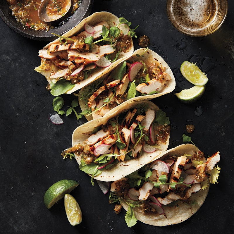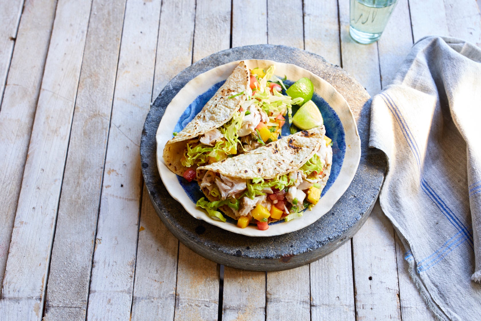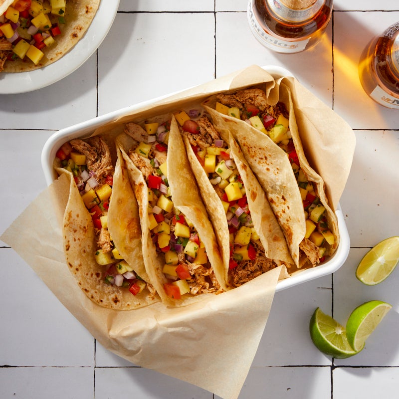 Jerk Chicken Tacos with Mango-Pineapple Salsa by Millie Peartree