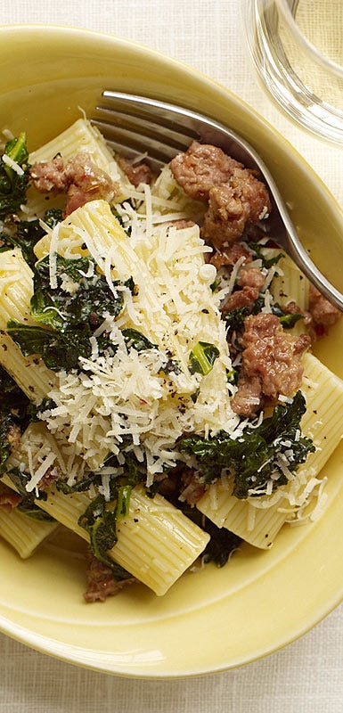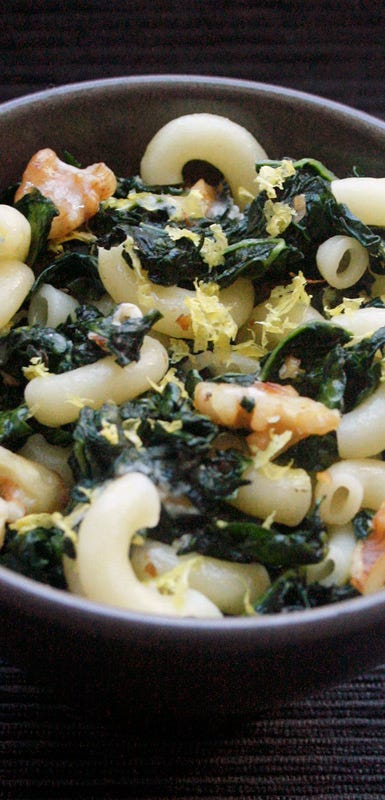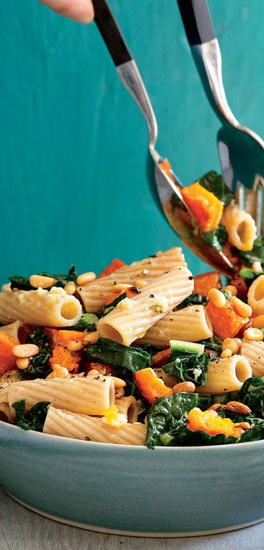 This leafy wonder goes by multiple names: Tuscan kale, black kale, and—perhaps most memorably—dinosaur kale, thanks to the reptilian-looking texture of its leaves. Compared with curly kale, lacinato leaves are flatter, narrower, and a bit more tender. Flavorwise, you can expect a sweeter, milder taste. Enjoy it raw in salads using one of the methods described above, or get your dino deliciousness in delicate dishes starring fish or pasta.