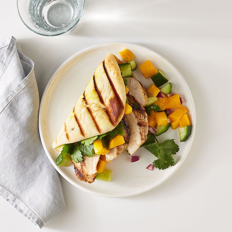 Curry Grilled Chicken Naan Sandwich with Mango Salsa
