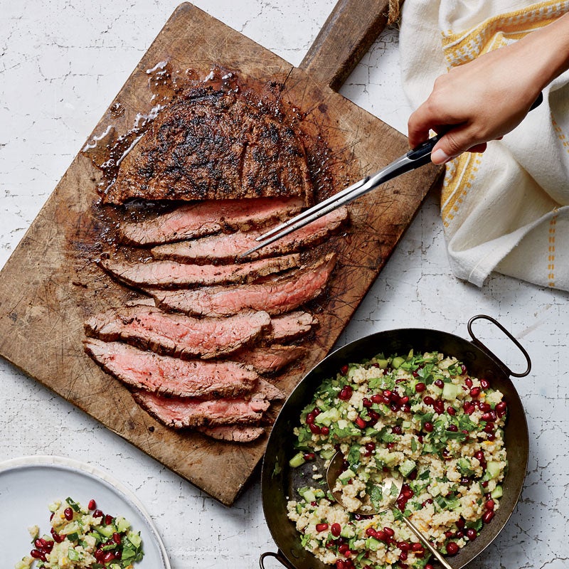 To find the perfect main and side combo, think about how ingredients and flavors will complement each other. For example, pair a cheesy cauliflower gratin with a light grilled lemon cod that clocks in at only 5 Points. Or enjoy a heartier type of protein, like lean flank steak with zingy pomegranate couscous.