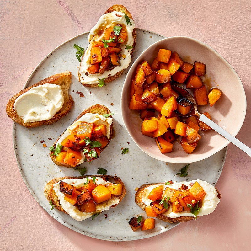 Start with shareable, light bites like hummus and veggies or–because bread is always invited to the party—crispy ricotta-topped bruschetta. Richer apps, like our 3-Point cheese fondue, are great if you want to sit and savor. As you’re prepping Valentine’s Day dinner, have some crudités within reach. Remember: veggies are filling, full of fiber, zero Points, and pack a nutritional punch that keeps your meal balanced and healthy.