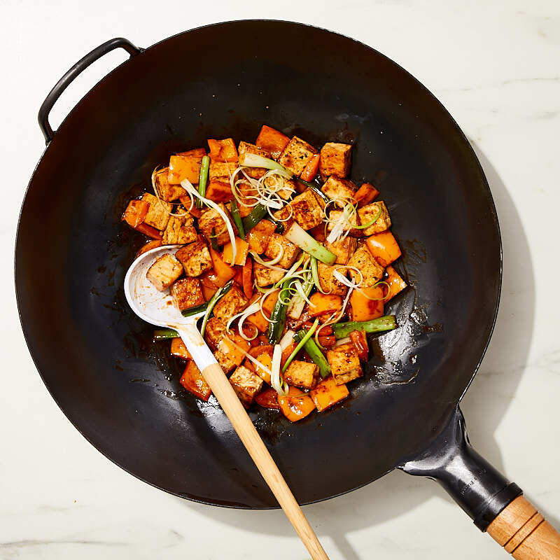 Stir-fried tofu with scallions