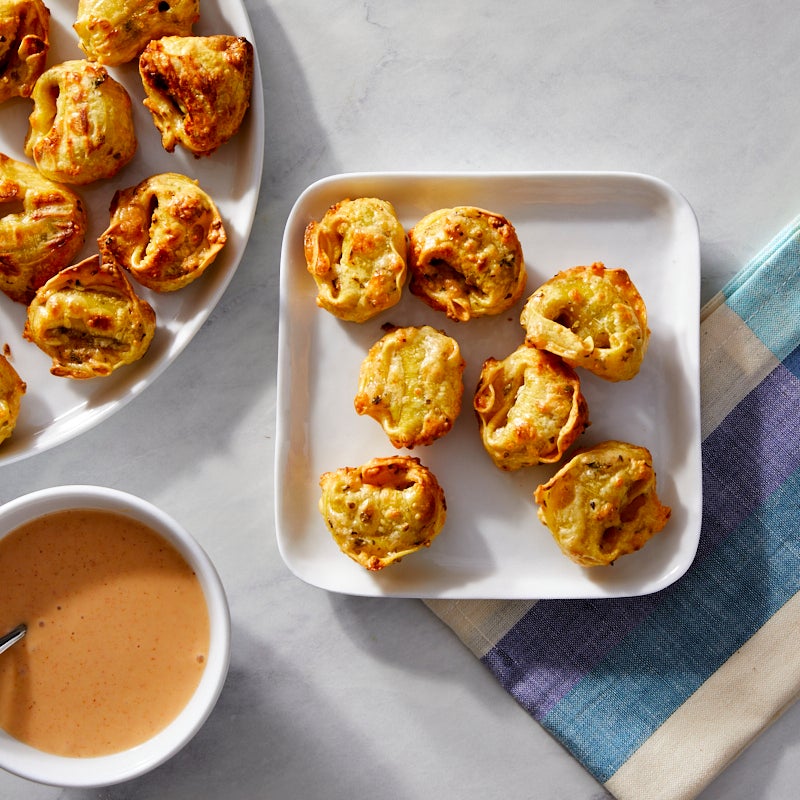 Oven-Fried Tortellini with Cheesy Dipping Sauce by Millie Peartree