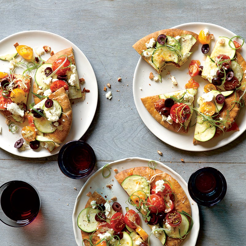 Zucchini and Tomato Pita Pizzas