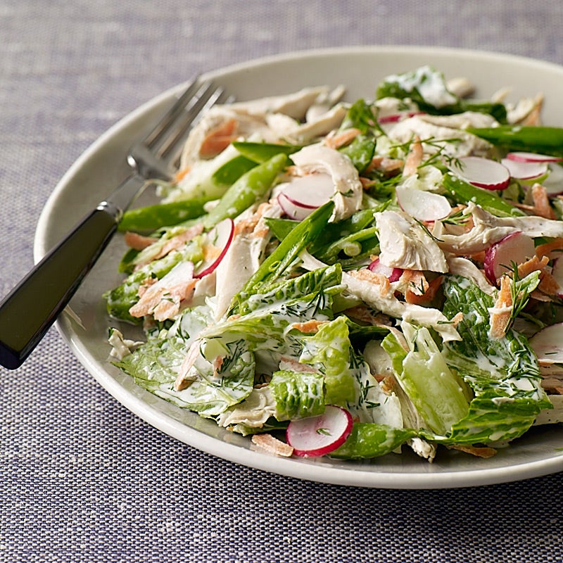 Spring chicken salad with creamy dill dressing