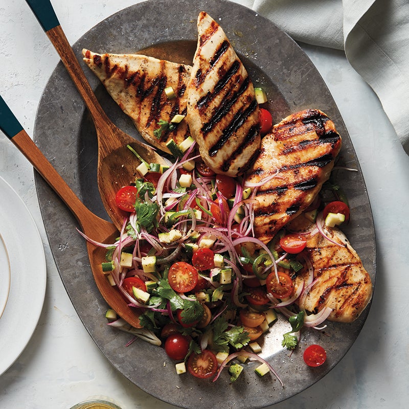 Chicken with Tomato-Zucchini Salad