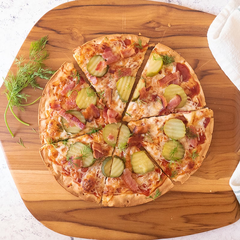 Cauliflower Crust Bacon-Pickle Pizza