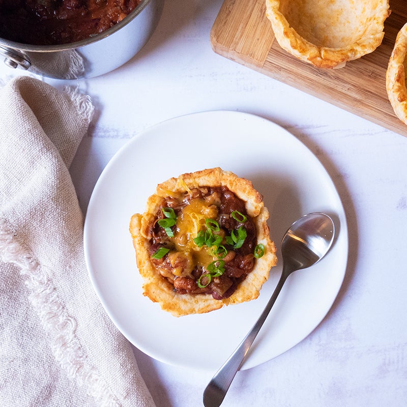 Two-Bean Chili in Cheesy Bread Bowls
