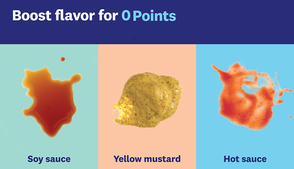 And here’s some good news: on the WeightWatchers®program for weight loss, these add-ons won’t interfere with your weight loss efforts. Many condiments are low in Points, so you can easily mix-and-match. Ketchup, mustard, and relish on that hotdog? Why not! Two different types of hot sauce on your scrambled eggs? Go for it.