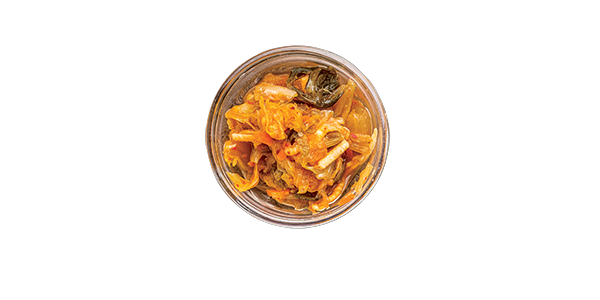 Next, feed those probiotics with plenty of prebiotics:Bananas, oats, and whole grains, beans, cruciferous vegetables (cauliflower, broccoli, cabbage, radishes),artichokes, and, as Rakel cheekily puts it, “foods that make you smell a little, like onion, garlic, and asparagus,” all work synergistically with probiotics to amplify their effects. You needn’t consume prebiotics and probiotics simultaneously, but they can certainly work well together: a banana and kefir smoothie; broccoli, asparagus, and tempeh stir-fry; Brussels sprouts topped with kimchi. Cooking destroys some prebiotics, so enjoy these foods raw whenever possible; when it’s not, light steaming can minimize the loss.