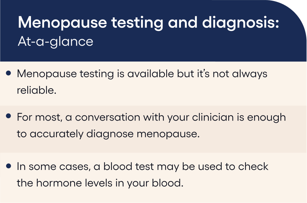 Here’s how clinicians diagnose menopause and perimenopause, when hormone tests may be considered, and why at-home kits might not be definitive.