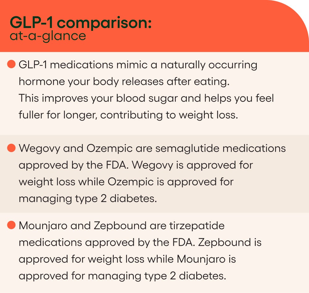 GLP-1 comparison guide: Ozempic vs Wegovy vs Mounjaro vs Zepbound