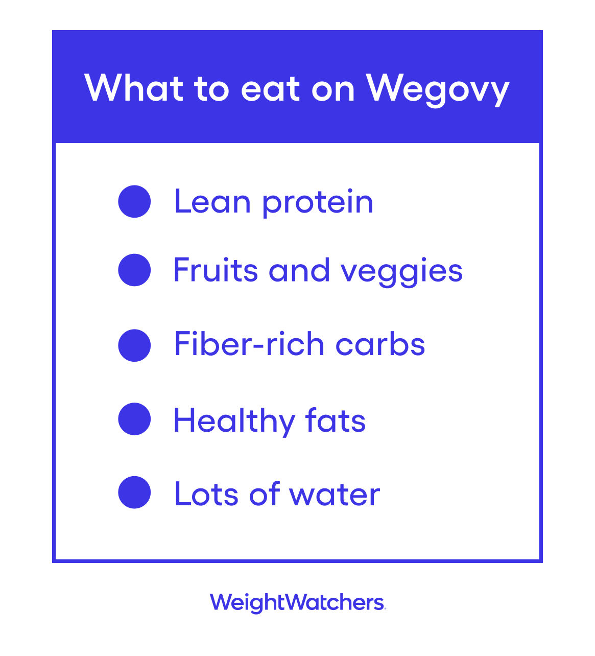 Wegovy (semaglutide)is a GLP-1 medication that is FDA-approved for individuals living with obesity or overweight. But Wegovy isn’t a standalone solution for weight loss — it should be used as part of a comprehensiveweight-loss programthat includes increased physical activity, regular medical monitoring, and a balanced diet. Filling up with foods that are rich in nutrients can not only support your weight loss efforts over the long run, but also help minimize certain gastrointestinal side effects that are common with GLP-1s. Just make sure you stay in lockstep with your healthcare provider.