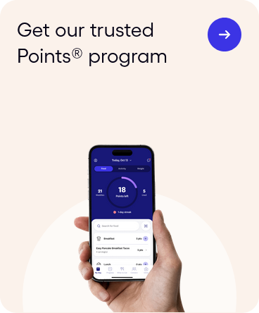 Our team includes nutrition and behavioral scientists, registered dieticians, clinical researchers, and more. Together they help you overcome common weight-loss hurdles—like stress-eating or late-night snacking—while our exclusive Points system makes nutrition easier—so easy that healthier eating will feel like second nature. After you sign up, you’ll answer a few questions to get a plan customized for you, and build healthy habits with proven behavior change techniques.