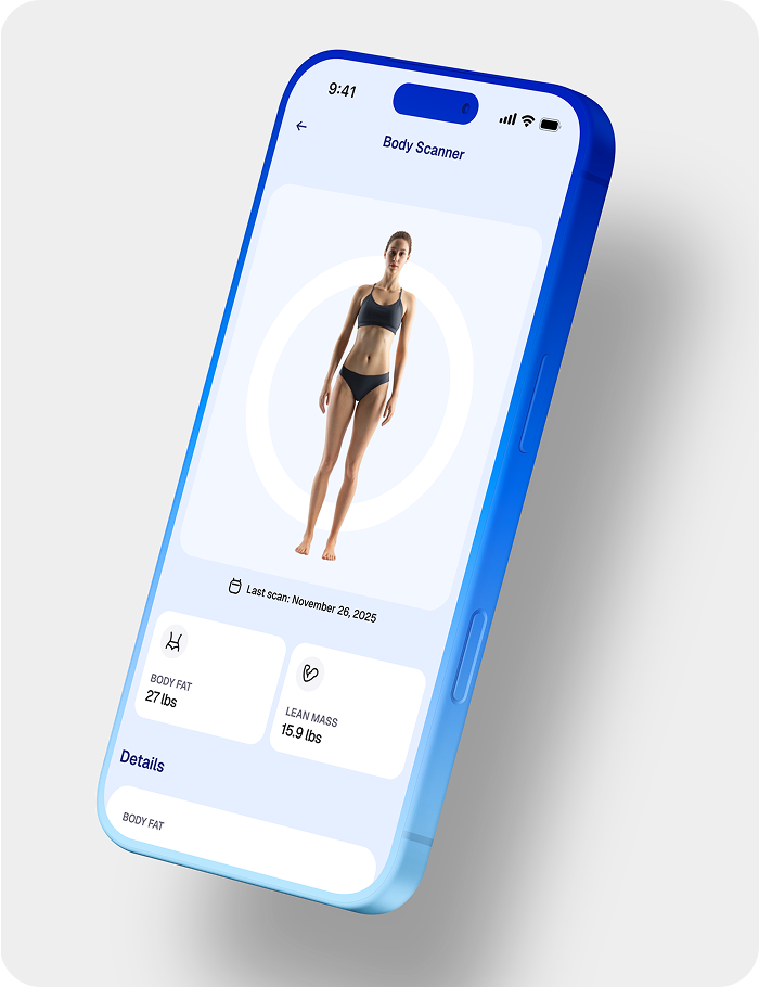 See progress that the scale can’t show with a 3D view on fat loss, inches down and muscle gains.