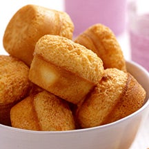 Spoon 3 heaping tablespoons of batter into each of 8 nonstick muffin cups; bake 6 minutes. Reduce oven temperature to 400ºF; bake 6 minutes more. Turn oven off and allow cakes to stand in oven for 10 minutes.