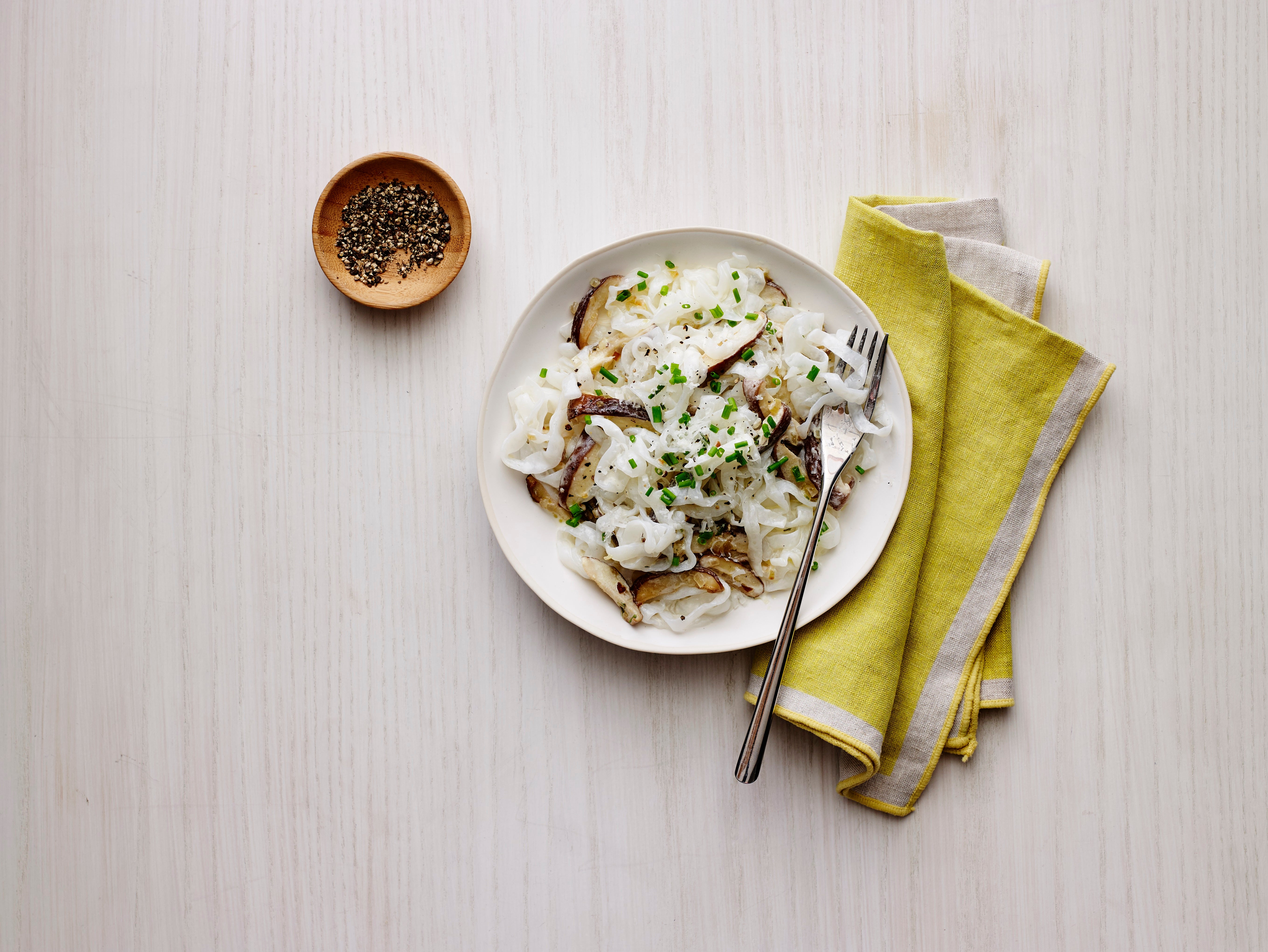 An incredibly rich and delicious side to pair with roast chicken, fish, or other meals, this recipe features Skinny Pasta Fettuccine in a creamy Parmesan sauce. Shiitake mushrooms give the dish its deep, earthy, wild mushroom flavor, but the pasta can also be made with classic button mushrooms, criminis or portobellos for a milder sauce. Or, break out the gourmet wild mushroom varieties such as porcinis or chanterelles; this rich dish can handle them! In this recipe, shallots replace the garlic often used in Italian cooking. You'll love the mellow kick shallots provide. Like garlic, they sharpen or accentuate a recipe's flavors, without giving off the bite garlic sometimes does. This pasta can stand on its own as a main dish, too, served alongside a green salad with a bright vinaigrette.
