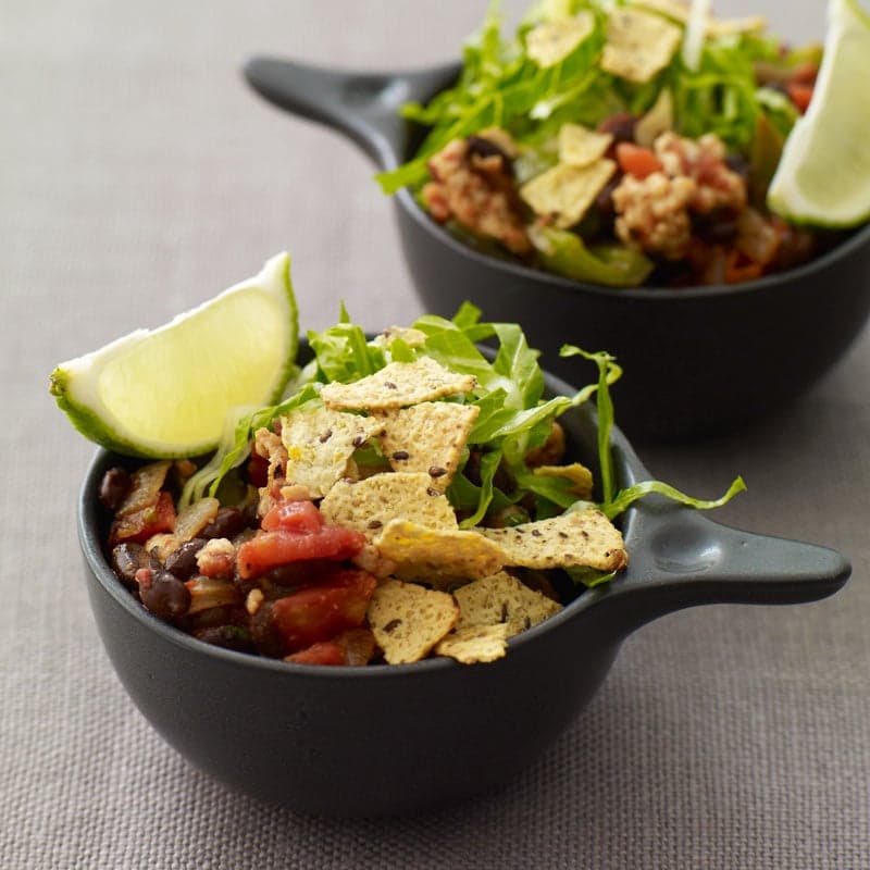 Stir in cilantro; remove from heat. Serve topped with lettuce and tortilla chips. Drizzle with fresh lime if desired. Yields about 1 cup turkey-bean mixture, 2 2/3 tablespoons lettuce and 3 broken chips per serving.